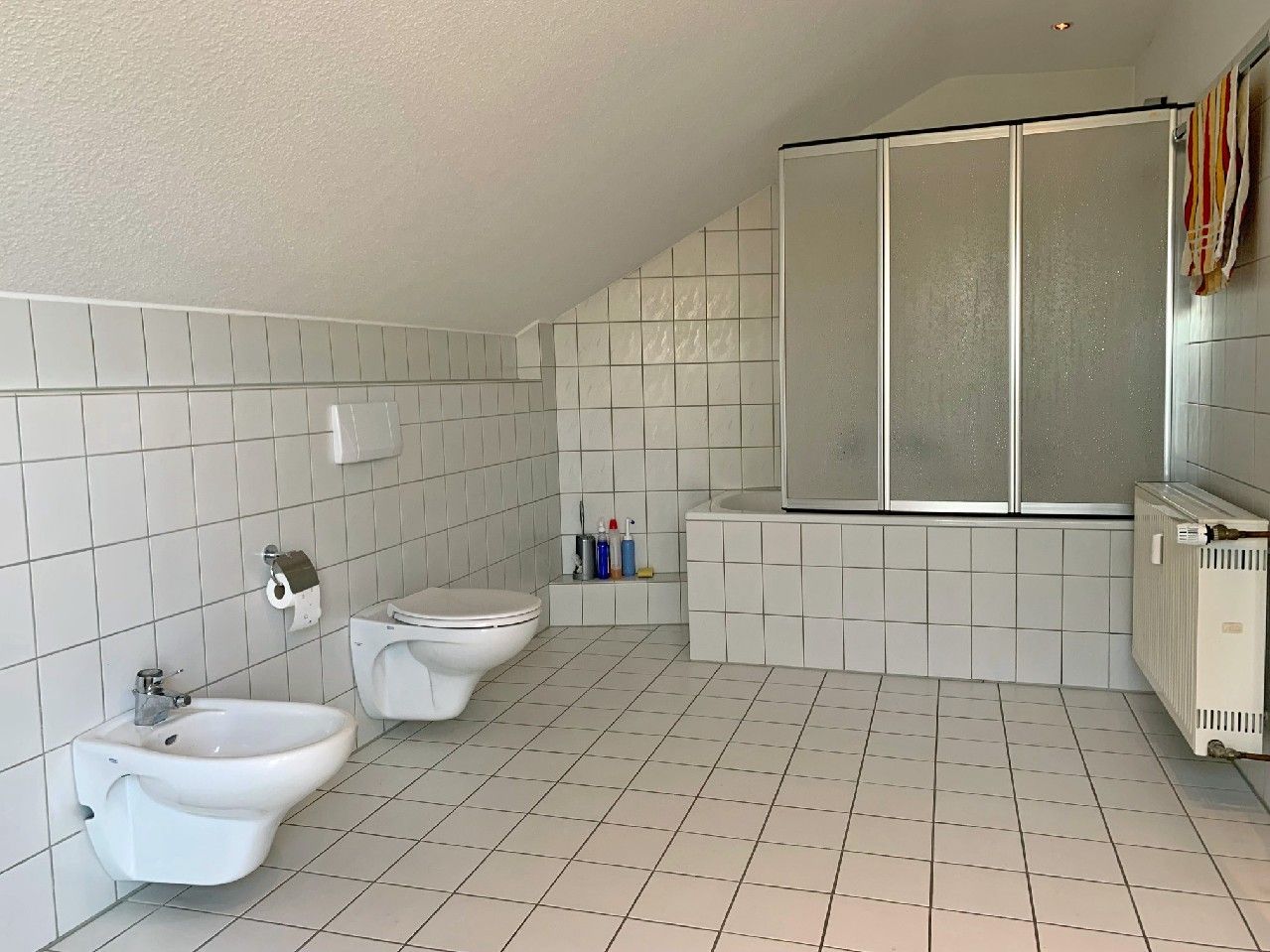 - Bad mit Duschwanne, Bidet, WC und Handwaschbecken