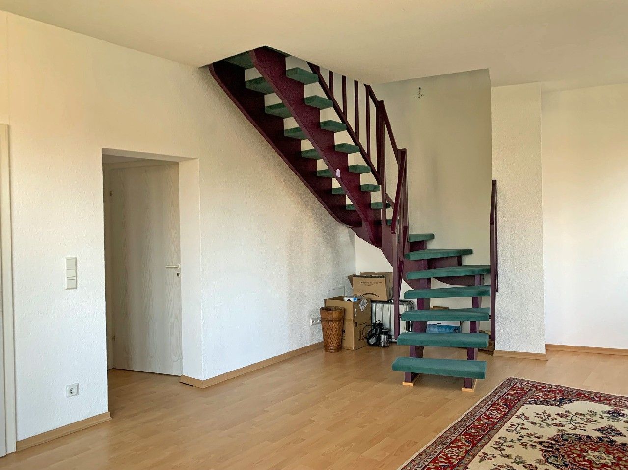 - Wohn-Esszimmer mit Ausgang auf Balkon 1 und offener Treppe ins