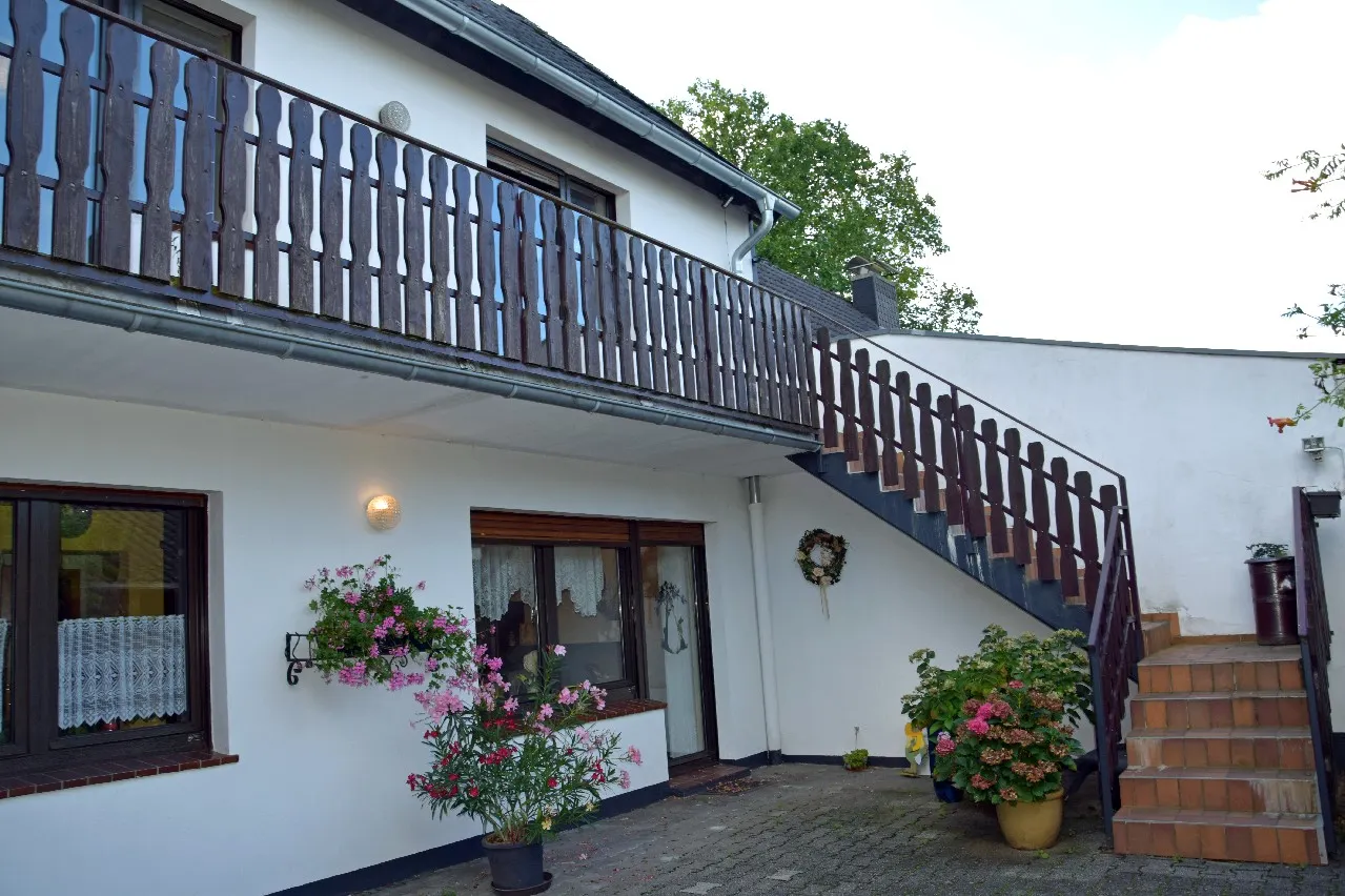 - Balkon mit Zugang über eine Betontreppe i. d. Garten
