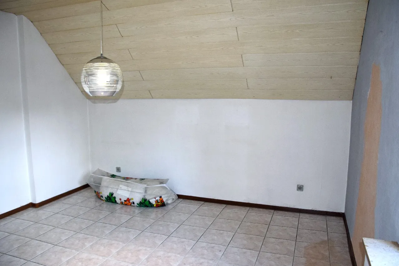 Eine Holzeinschubtreppe führt vom Flur aus auf den Speicher (Baujahr entsprechend mit Holzwolle gedämmt). Dieser dient als weitere sehr großzügige Abstellfläche.