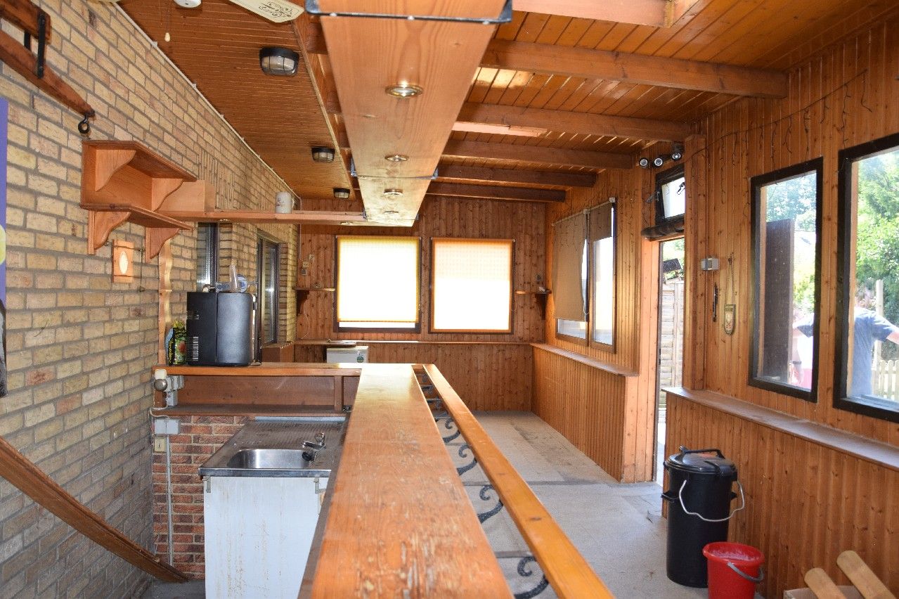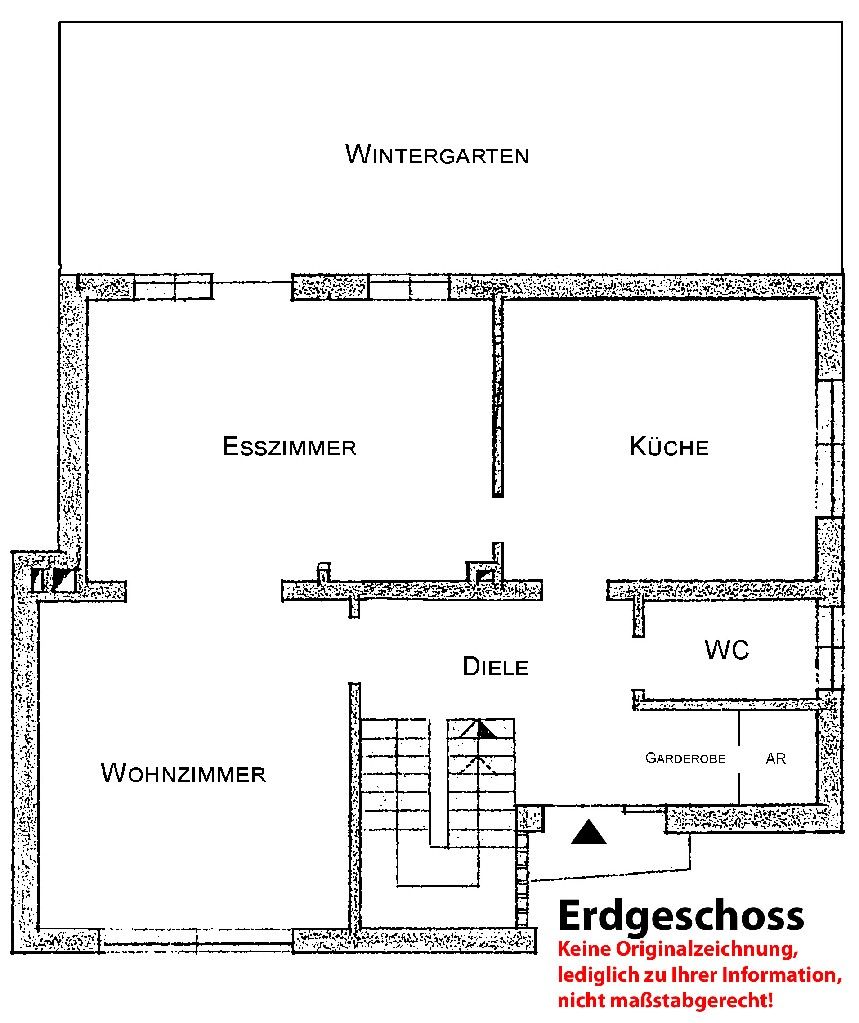 Der Wintergarten ist in Holzausführung errichtet worden. Hier befindet sich eine kleine Theke (Wasseranschluss). Durch die Holzausführung ist er recht dunkel. Der Wintergarten ist nicht beheizt und könnte auch zügig entfernt werden, so dass ein einladender Zugang vom Wohnzimmer auf eine großzügige Terrasse geschaffen werden kann. Darüber hinaus wurde seinerzeit keine Baugenehmigung eingeholt. Aus diesem Grund kann er in die Wohnfläche nicht mit einbezogen werden.