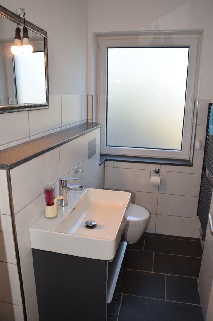 Diverse Restarbeiten sind noch zu tätigen, z.B. Boden- und Wandabschlüsse, teils Fugenarbeiten, teils fehlende Leisten etc. Die Arbeiten sind jedoch überschaubar und im Rahmen einer Renovierung bzw. durch die Umgestaltung bei Eigentumswechsel mit durchführbar.