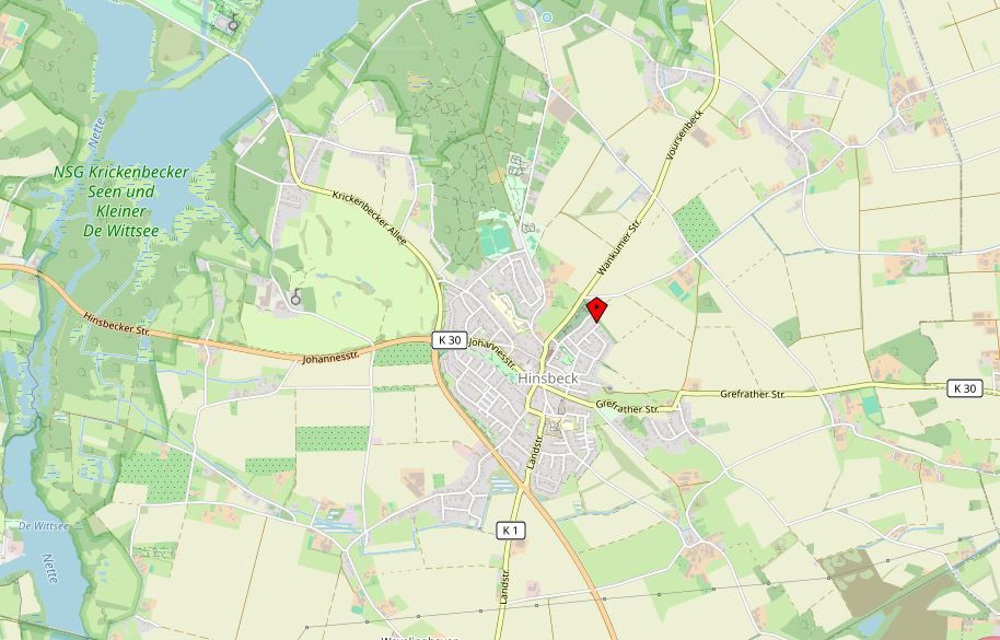 41334 Nettetal, Ortsteil Hinsbeck, in beliebter und ruhiger Wohnlage (Sackgasse). Alle notwendigen Ver- bzw. Entsorgungszu- und -ableitungen, wie z.B. Strom, Gas (liegt in der Straße), Wasser, Kanal etc., sind vorhanden.