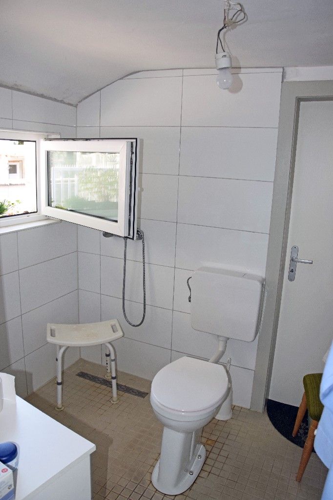 Bad mit Zugang in das Nebengebäude (Abstellraum), welcher auch von außen begehbar ist,