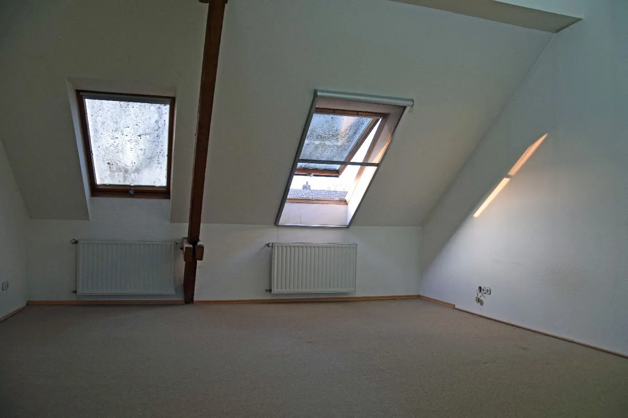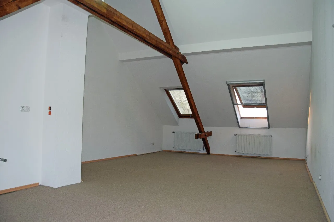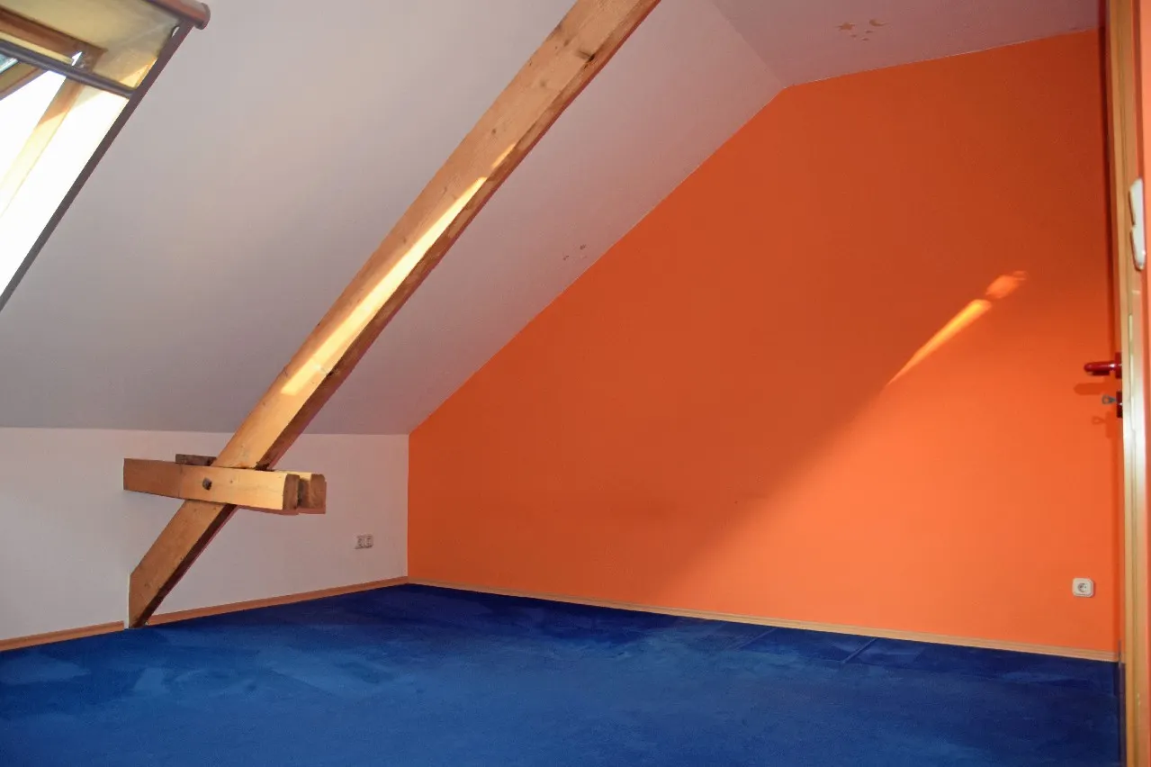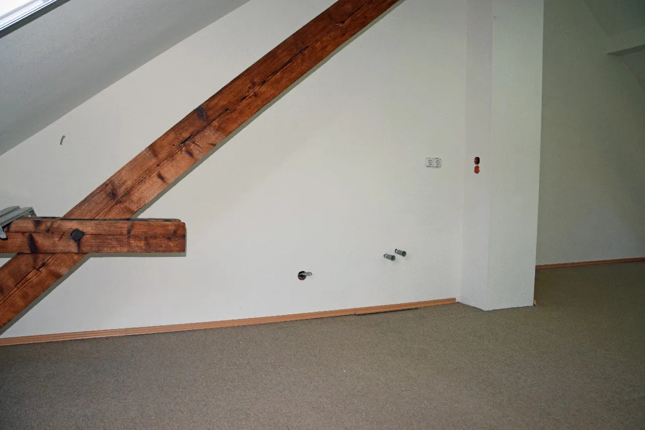 Die zur Vermietung stehende Wohnung befindet sich im Dachgeschoss eines Dreiparteienhauses, welches ursprünglich um ca. 1907 errichtet worden ist. Es handelt sich um eine frisch renovierte Wohnung mit entsprechenden Holzbalken, die für eine gemütliche Atmosphäre sorgen. Das Haus wurde ca. 1995 kernsaniert. Das Dach ist entsprechend gedämmt. Die Fenster sind in Holzausführung doppeltverglast, mit Plissees. Bei dem Oberboden oberhalb der Holzgeschossdecke (mit Trittschalldämmung) handelt es sich um einen Laminatboden in einem warmen Ton. Im Bad ist der Oberboden teils gefliest und mit entsprechend für Nassräume hergestellten Laminat versehen.