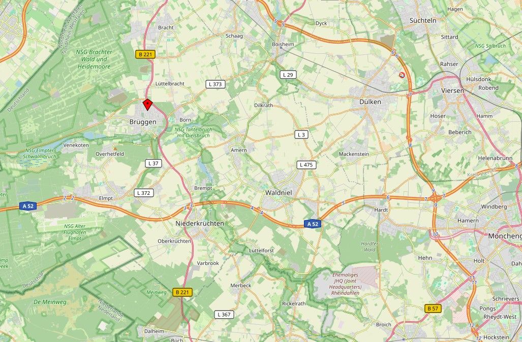 Die Immobilie befindet sich in attraktiver Wohnlage von 41379 Brüggen. Die ruhige und dennoch zentrale Lage bietet eine ideale Kombination aus naturnahem Wohnen und guter Anbindung. Die historische Ortsmitte von Brüggen mit ihrem charmanten Flair liegt nur einen zehnminütigen Spaziergang entfernt. Einkaufsmöglichkeiten, Schulen, Kindergärten sowie ärztliche Versorgung sind in wenigen Minuten erreichbar. Auch die Nähe zum Brachter Wald lädt zu ausgedehnten Spaziergängen, Fahrradtouren und vielfältigen Freizeitaktivitäten ein. Die Autobahnen A52 und A61 sorgen zudem für eine gute Anbindung an Mönchengladbach, Düsseldorf und die Niederlande.