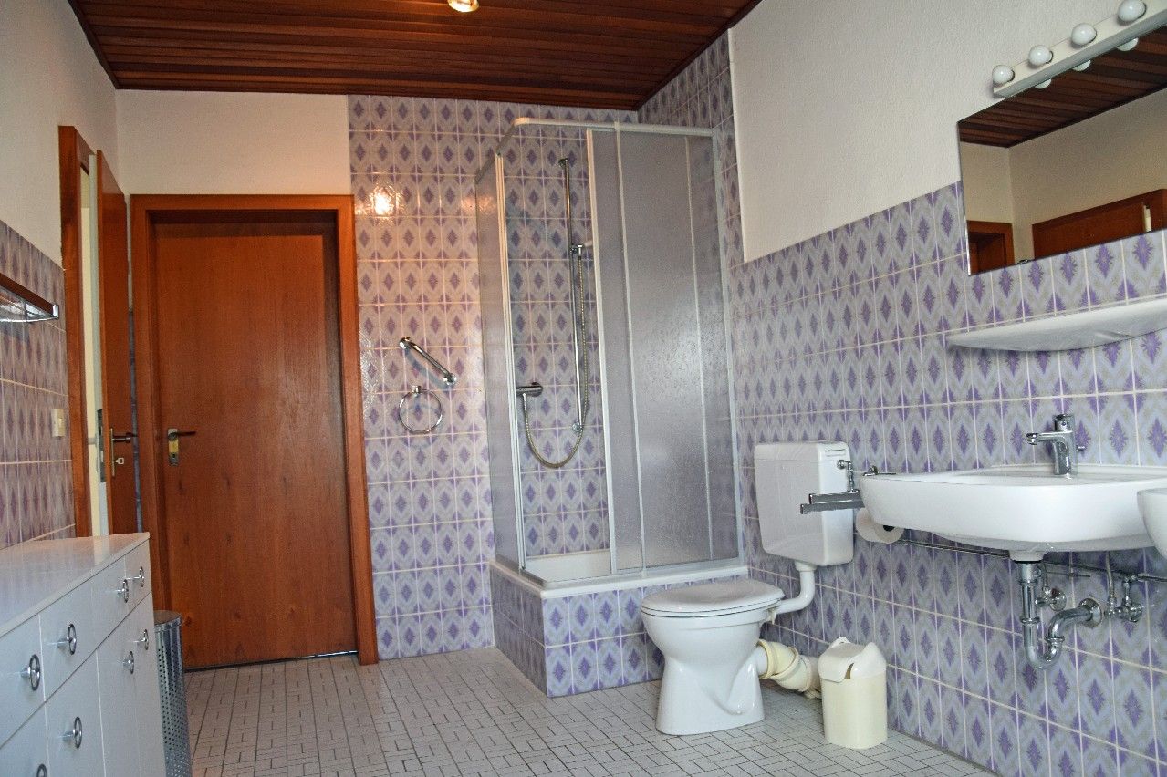 Bad mit Dusche, WC, zwei Handwaschbecken