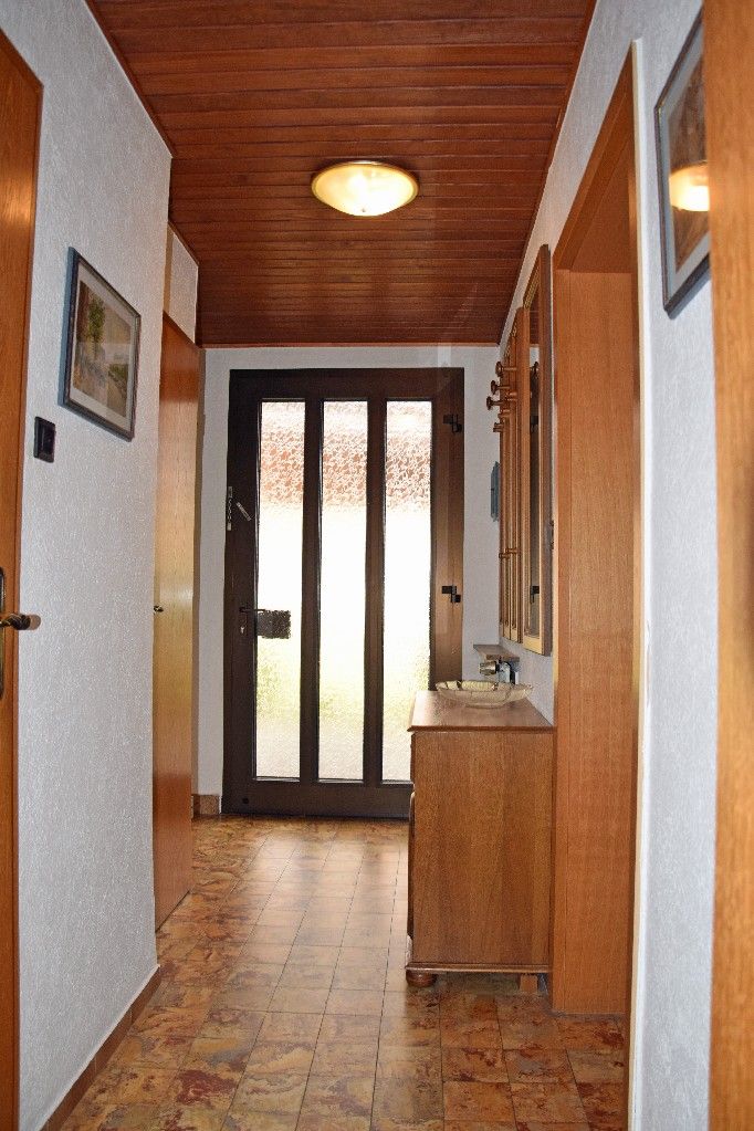 Die Hauseingangstür ist in Aluausführung mit Glaseinsatz. Bei den Zimmertüren handelt es sich überwiegend um Holztüren.