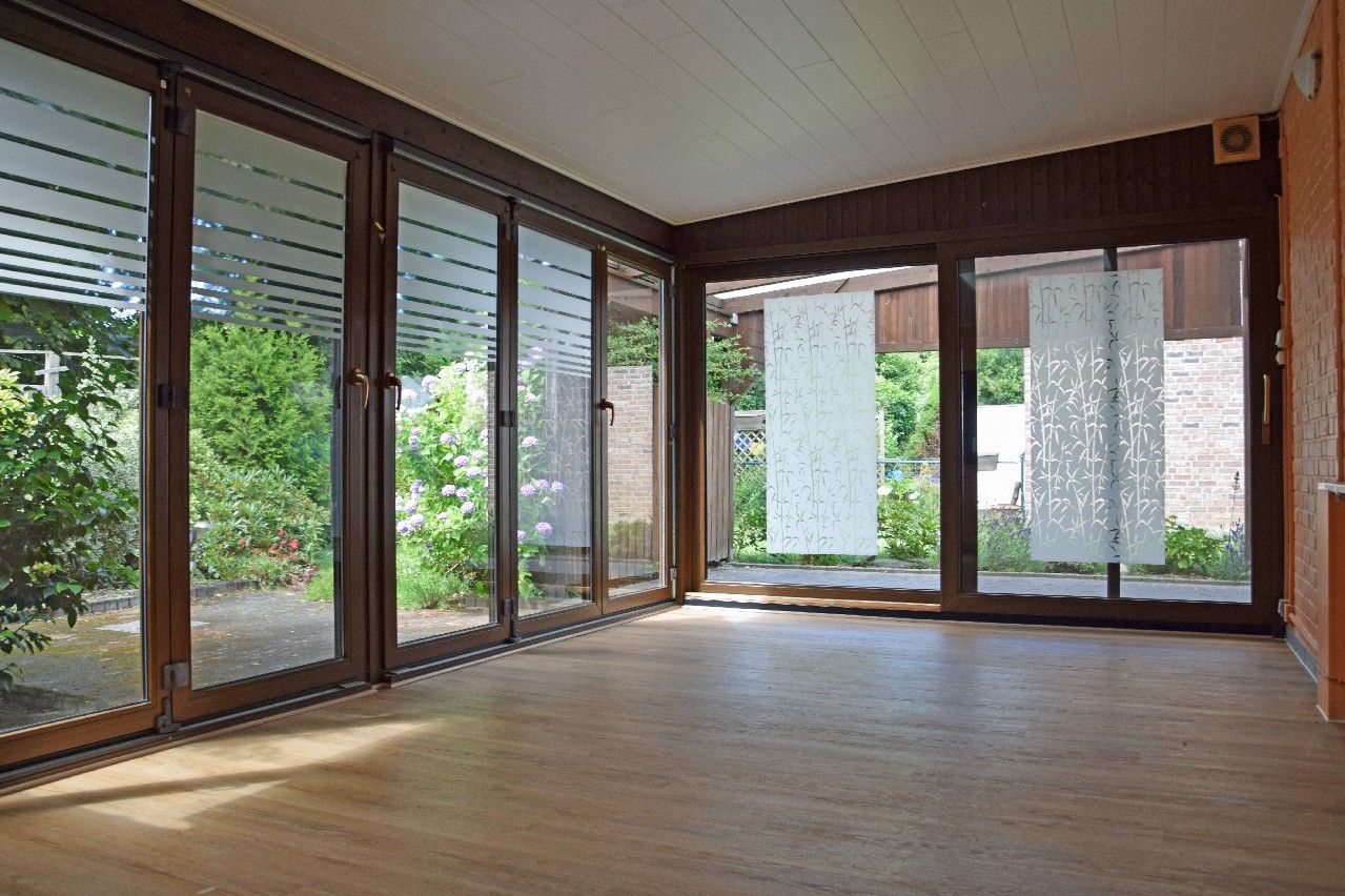 Ein echtes Highlight bildet der etwa 1996 ergänzte Wintergarten in Holz-/Kunststoffbauweise. Mit seiner großzügigen Verglasung, dem neuen, isolierten Dach samt Bodenbelag (Vinyl) sowie einem elektrisch bedienbaren Dachflächenfenster mit Regensensoren, schafft dieser Raum eine helle, wohnliche Atmosphäre perfekt als Erweiterung des Wohnraums oder Rückzugsort mit Blick ins Grüne.